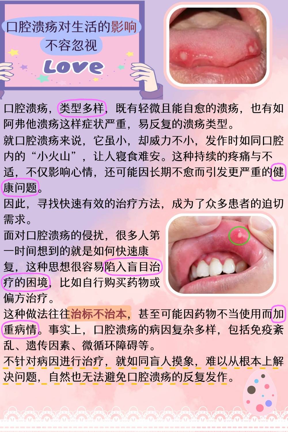 在面對口腔潰瘍時(shí),我們要根據(jù)自己的實(shí)際情況選擇合適的治療方法,如果口腔潰瘍持續(xù)不愈或反復(fù)發(fā)作,建議及時(shí)就醫(yī),以便專業(yè)醫(yī)生進(jìn)行診斷和治療,希望通過本文的介紹,能幫助您更好地了解口腔潰瘍的解決方法,保持口腔健康,享受美好生活。